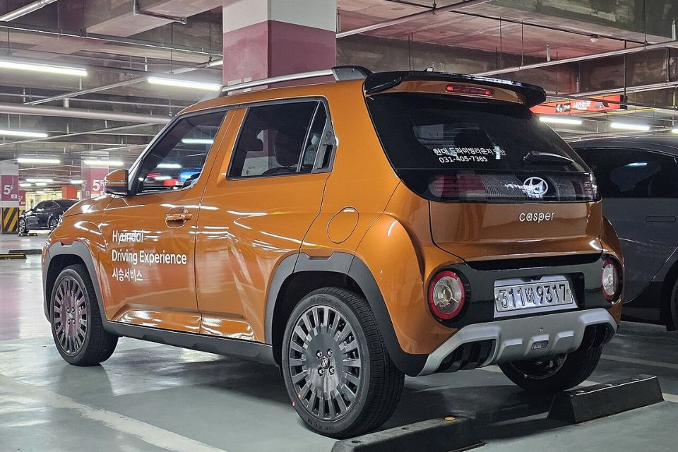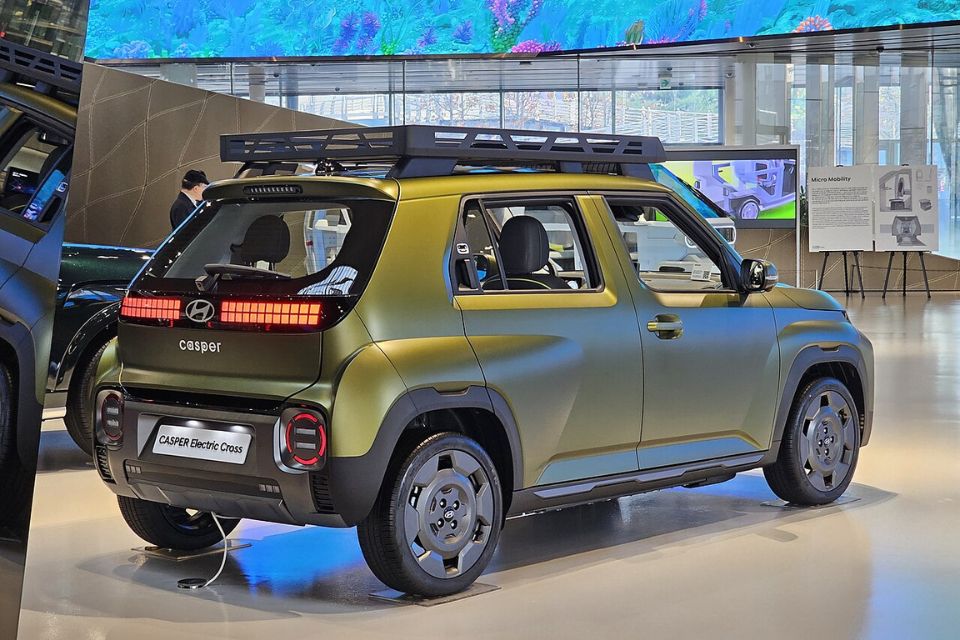Do là xe điện, Hyundai Casper không có ống xả. Điều này giúp phần đuôi trở nên gọn gàng và hiện đại hơn. Thiết kế này cũng phù hợp với xu hướng xe điện.